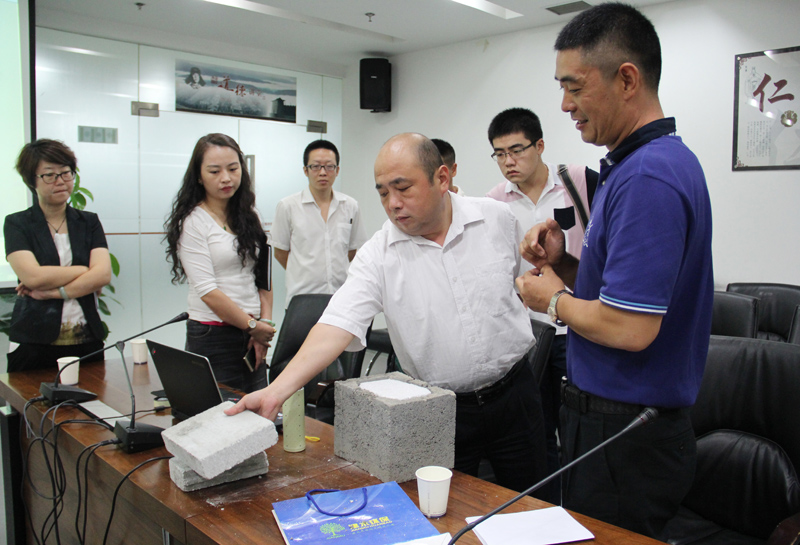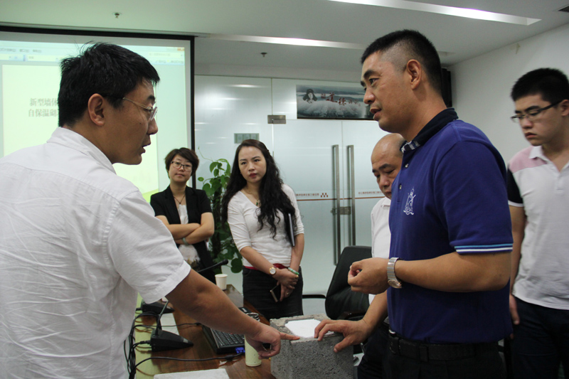 張經(jīng)理就公司新型墻體材料產(chǎn)品誕生過程、產(chǎn)品背景及當(dāng)前保溫材料現(xiàn)行狀況等作了介紹,會(huì)議中張經(jīng)理對我公司產(chǎn)品特性、產(chǎn)品設(shè)備工藝、產(chǎn)品案例、新型保溫墻材與傳統(tǒng)建筑材料對比等作了詳細(xì)介紹.
