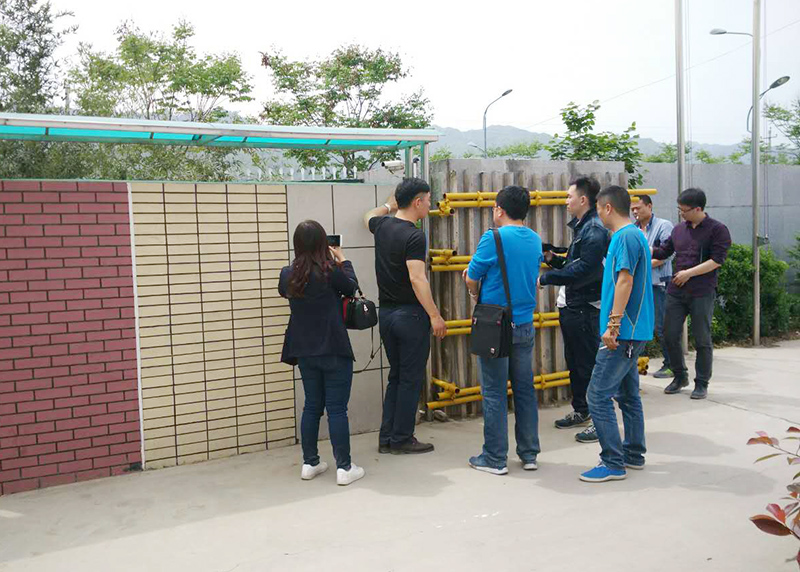一、公司領(lǐng)導(dǎo)帶領(lǐng)客戶對(duì)廠區(qū)的樣板墻進(jìn)行一一介紹: